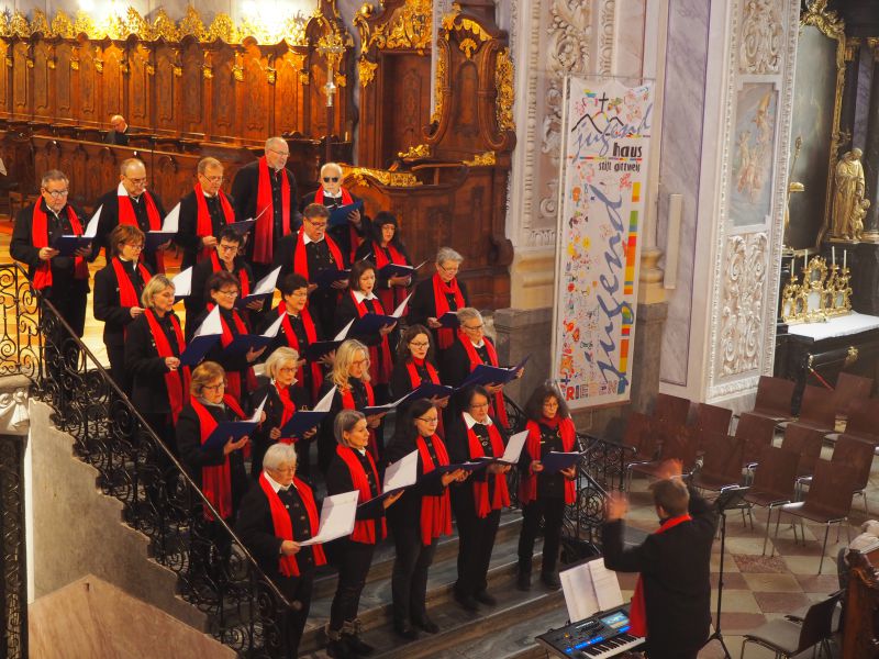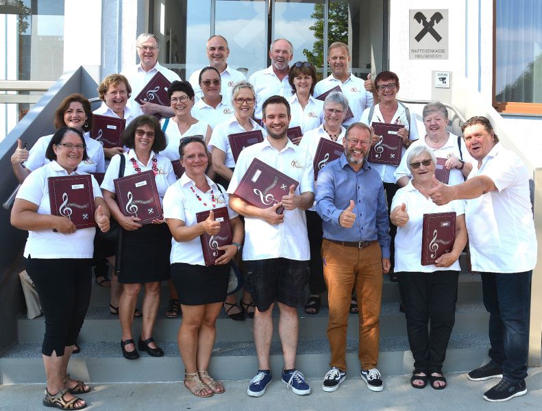Aufgrund der großzügigen Unterstützung beim Ankauf neuer Chormappen überraschten wir Geschäftsleiter Jürgen Riederer und seine Mitarbeiter der Raiffeisenkasse Heiligeneich vor kurzem mit einem klei...