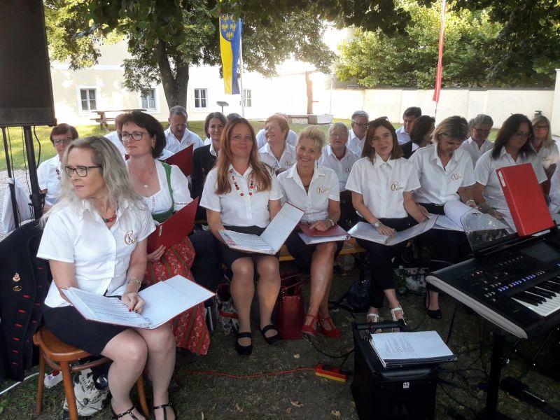 Am 16.6. durften wir gemeinsam mit der Blasmusik Heiligeneich die Feldmesse anlässlich der Schlosseröffnung bei schönem Wetter im Schlossgarten Atzenbrugg mitgestalten. Wir sangen Gospellieder wie ...