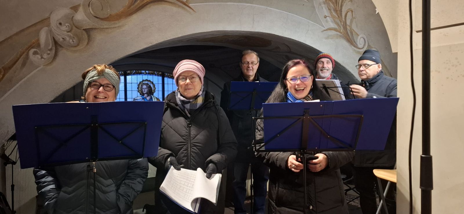 In Kleinstbesetzung (8 Sänger*innen) beschlossen wir das Jahr 2025 und wünschten der Pfarrgemeinde mit "A simple wish" alles Gute für das neue Jahr. "Wir wollen Frieden" und hoffen, dass wir auch im neuen Jahr "von guten Mächten" treu und still umgeben sind und besangen dies mit den gleichnamigen Liedern.