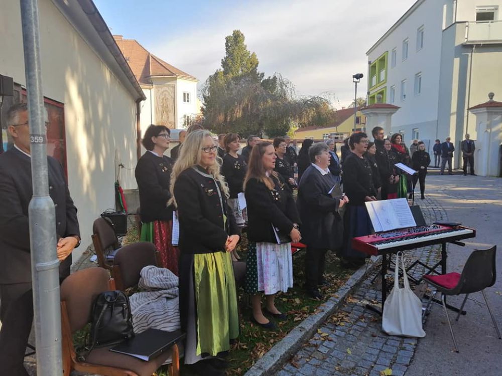Mit viel Abstand konnte am Kirchenplatz wieder das Erntedankfest gefeiert. Mit Lieder wie Aller Augen warten auf dich Herre, This is the day und dem Psalm 34 des Brooklyn Tabernacle Choir konnte ein weiter zeitlicher Bogen im Laufe der Messe gespannt werden.