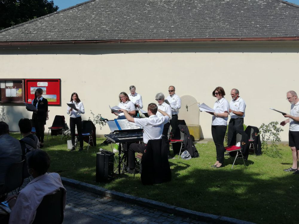 Wir proben im Freien, etwa am Kirchenplatz und freuen uns über interessierte Zuhörer*innen! Menschen, die mit uns den Neubeginn wagen wollen und gerne das Chorsingen ausprobieren möchten, heißen wir jederzeit besonders herzlich willkommen! Mitzubringen ist ein 3G-Nachweis sowie die Freude am Singen!